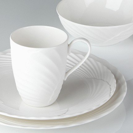 Twelve 4 Pc Place Setting - This Transitional Pattern Is A Beauty, In Neutral Bone China With Bisque And Glazed Finishes. Each Piece Is Graced With Sculpted Pleats That Create A Spiral-Like Visual Effect. The Pleated Layers, Whi - Made In Usa